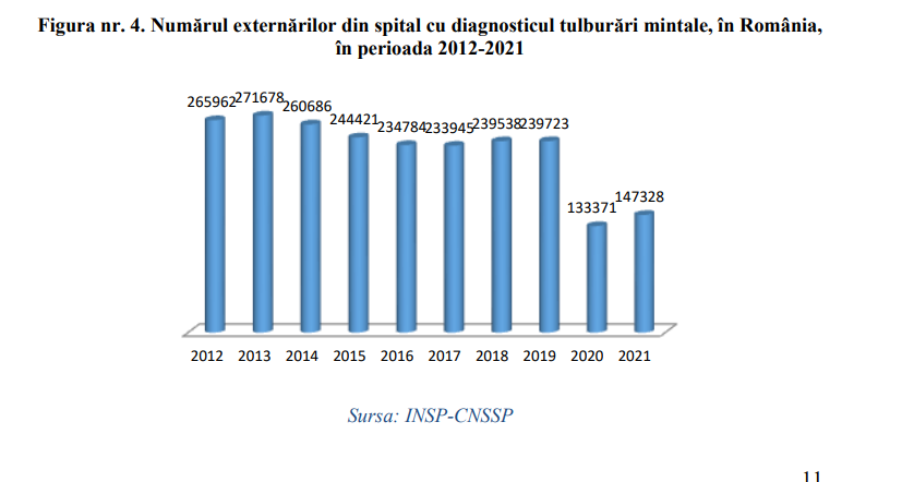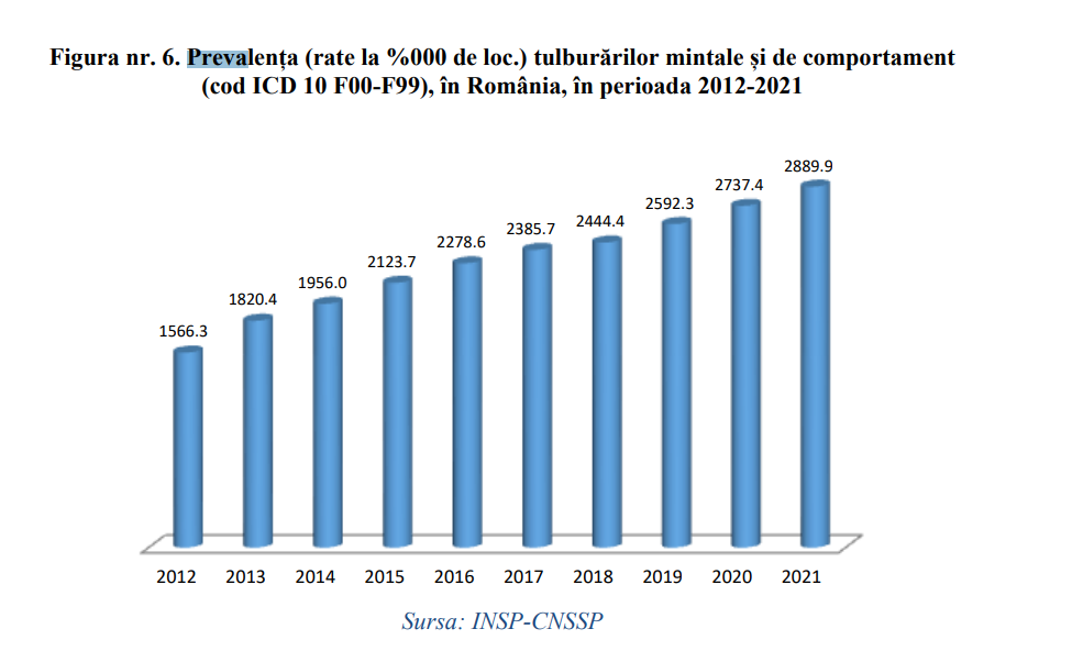 - Conform INSP, in anul 2021 aveam 232.000 cazuri existente de tulburari mintale si de comportament carora in fiecare an li se adauga aproximativ 250.000 cazuri noi