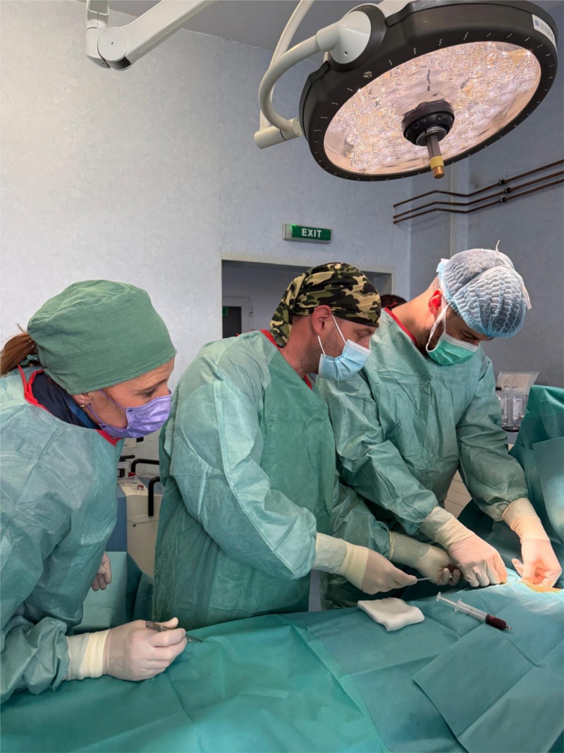 Procedura a fost efectuată săptămâna aceasta la un pacient de 56 de ani, de către dr. Gyori Zsolt, medic primar chirurgie plastică, medic coordonator Compartiment Chirurgie Plastică, împreună cu dr. Cosmin Băcean, medic specialist ATI si asist. med. Daliana Bene, asistent medical principal Bloc Operator I.
