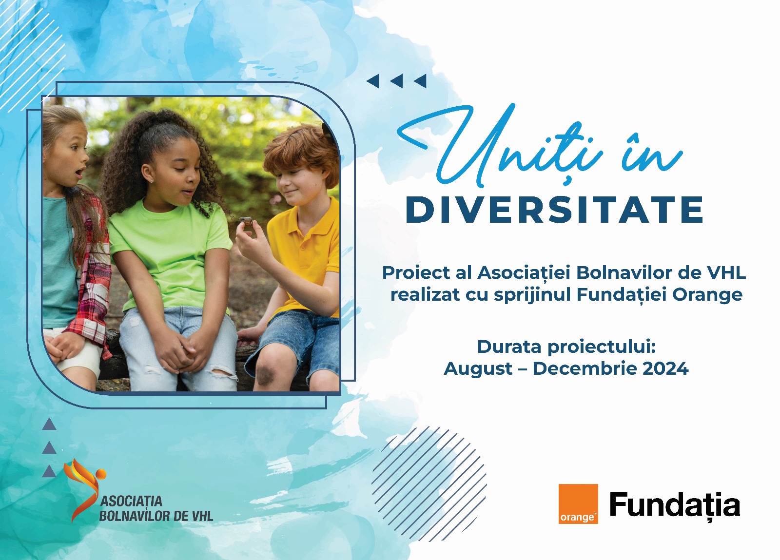 • Proiectul este derulat de Asociația Bolnavilor de Von Hippel Lindau, în perioada august – decembrie 2024, cu sprijinul Fundației Orange.