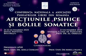 Perioada: 21-23 octombrie 2025, Hotel Novotel din București, Spitalul Clinic de Psihiatrie „Prof.Dr. Al. Obregia”Conferința Națională a Asociației Psihiatrilor Liberi din România „Afecțiunile...