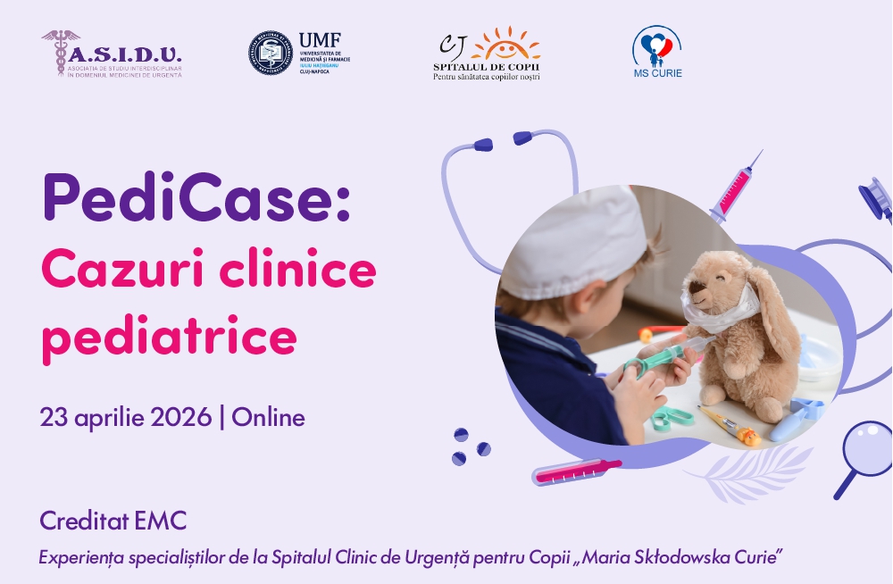 Anul acesta, Asociația de Studiu Interdisciplinar în Domeniul Medicinei de Urgență are plăcerea de a vă invita la PediCase 2026 – Cazuri clinice pediatrice, un webinar care va avea loc în 23 aprilie 2026, exclusiv online, în parteneriat cu Spitalul Clinic de Urgență pentru Copii „Marie Curie” din București.