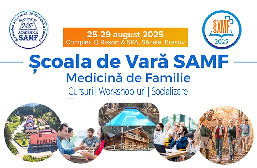 Societatea Academică de Medicina Familiei (SAMF) are plăcerea de a anunța organizarea unei noi ediții a Școlii de Vară de Medicina Familiei care se va desfășura în perioada 25–29 august 2025 la Complex Q Resort & SPA, Săcele, Brașov.