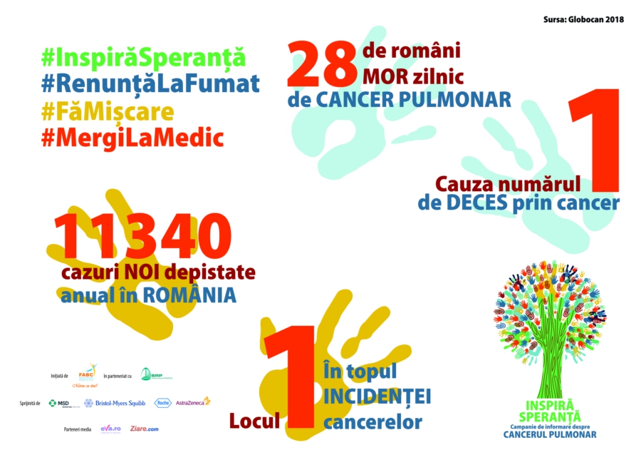 Pentru că noiembrie este Luna de Luptă Împotriva Cancerului Pulmonar în întreaga lume, Federația Asociațiilor Bolnavilor de Cancer (FABC) lansează campania “Inspiră speranță” pentru a atrage atenția asupra importanței diagnosticării precoce a cancerului pulmonar. De asemenea, trei pacienți care au supraviețuit cancerului pulmonar își povestec propriile experiențe și transmit mesaje motivaționale pacienților care se luptă cu această maladie.