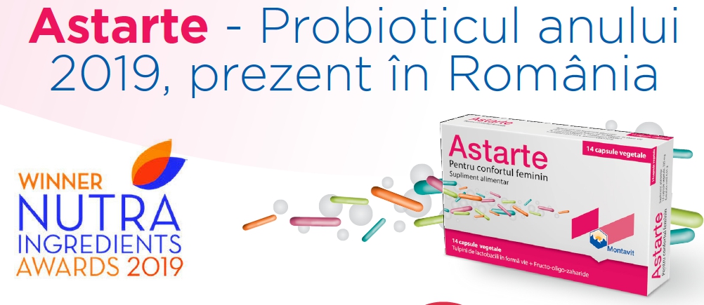 Fiind unul din cele mai inovative produse probiotice, cu rezultate excelente confirmate de către studii, Astarte a fost inclus în competiţia organizată de NutraIngredients Awards 2019, devenind câştigător al categoriei Produsul probiotic al anului.