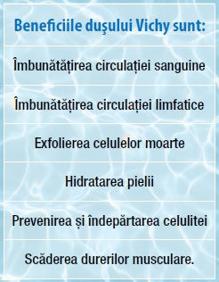Duşul Vichy este un tip special de masaj pe bază de apă, o formă specială de hidroterapie cu rol neaşteptat de bun în relaxarea imediată, îmbunătăţirea circulaţiei sanguine şi limfatice.