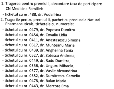 Medicii care au participat la cea de-a XIV-a ediție a Conferinței Naționale de Medicina Familiei, desfășurată la București între 29 martie și 1 aprilie, au avut oportunitatea de a participa la o tombolă organizată în parteneriat de compania Natural Pharmaceuticals cu revista Săptămâna Medicală, cu premii constând în bani și suplimente nutritive. Astfel, toți cei care au completat un chestionar la standul Fin Watch- Săptămâna Medicală, au fost înscriși în tragerea la sorți pentru premiul cel mare constând în decontarea taxei de participare la eveniment, sau unul dintre cele 12 premii constând în pachete de produse Natural Pharmaceuticals.