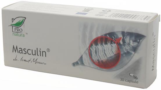 MASCULIN® – prin formula sa unică, determină creşterea atât a performanţelor sexuale cât şi a funcţiilor întregului aparat reproducător masculin. Zizyphi radix creşte fluxul sangvin în corpii cavernoşi; extractul de ţelină stimulează funcţia sexuală şi intervine în creşterea potenţei; ginkgo biloba îmbunătăţeşte circulaţia sangvină; ginsengul roşu susţine producţia de testosteron, iar atomizatul din larve de trântor îmbunătăţeşte funcţia sexuală. masculina.