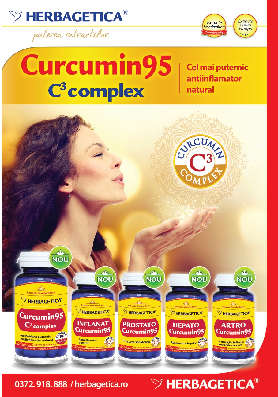 Curcumin95 C3 complex este un extract standardizat din Curcuma longa cu minim 95% curcuminoide, unul dintre cele mai puternice șiintense extracte din lume. Acțiunile sale puternic antioxidante, antiinflamatoare și anticancerigene îl recomandă ca unul dintre cele mai eficiente substanțe naturale cunoscute.