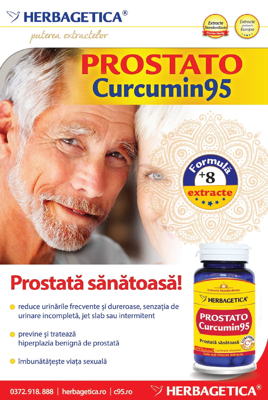 PROSTATO CURCUMIN95, prin formula sa unică, intensă cu 7 extracte standardizate din cele mai recunoscute plante specializate, ajută în prevenirea şi tratarea hiperplaziei benigne de prostată, cât şi a cancerului de prostată.