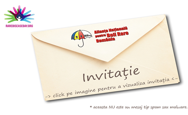 Alianța Națională pentru Boli Rare România (ANBRaRo), în parteneriat cu European Organisation for Rare Diseases (EURORDIS) are deosebita plăcere să te invite la conferința de presă organizată cu ocazia Zilei Bolilor Rare. Evenimentul are loc pe 27 februarie 2017, la ora 12.30, la Hotelul Ramada Parc, sala Europa.