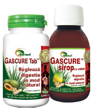 GASCURE Tab™ - susține funcționarea normală a sistemului gastrointestinal, asigurând o digestie și un tranzit intestinal normale. Complexul de fitonutrienți din GASCURE Tab™ asigură o digestie normală prin stimularea eliberării sucului gastric şi a secreției enzimelor digestive. Digestia gastrică este susținută de aportul de papaină, enzimă implicată în digestia proteinelor la nivelul stomacului. Ajută la restabilirea frecvenței și consistenței scaunelor, la eliminarea din intestine a toxinelor și a gazelor provenite dintr-o digestie deficitară. Susține astfel procesul natural de detoxifiere. Prin susținerea funcțiilor gastrice, intestinale, hepatobiliare și a tranzitului intestinal, GASCURE Tab™ ajută la eliminarea neplăcerilor cauzate de alimentele greu digerabile, o dietă dezechilibrată sau excesele alimentare.