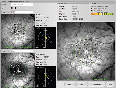 Cu ajutorul noilor terapii oftalmice, clinicienii necesită unelte adiţionale pentru a monitoriza în timp rezultatele tratamentelor. În timp ce OCT oferă imagini de calitate ridicată a structurilor retiniene, microperimetria asigură posibilitatea de a testa şi monitoriza modificările în funcţia retiniană a pacientului şi în locaţii selectate ale fundului de ochi.