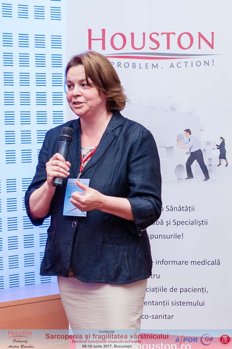 „Noi ne ocupăm de aproape 20 de ani de osteoporoză, iar cercetătorii care au studiat fracturile osteoporotice și riscul de fracturi, în ciuda faptului că au fost foarte multe descoperiri și îmbunătățiri în ceea ce privește diagnosticul și identificarea pacientului cu risc de fractură, nu au reușit să treacă de un prag. Am reușit să identificăm mai puțin de jumătate dintre pacienții care au suferit o fractura de șold, mai puțin de 50% dintre ei au avut osteoporoză, conform densității minerale osoase... Acum am deschis practic un nou capitol în explorarea acestei noi dimensiuni, ceea ce putem să denumim sarcopenia, sau sindrom de fragilitate, sau sindrom de dismobilitate, sau sindrom de risc de fractură, sunt foarte mulți termini medicali, dar ideea este că trebuie să pornim și în această direcție, a reducerii riscului de căderi, pentru a preveni fracturile osteoporotice mult mai eficient decât am reușit până acum”, a declarat Șef lucr. Dr. Gasparik Andrea Ildiko, președintele Asociației Pentru Prevenirea Osteoporozei din România (ASPOR), coorodnator științific și inițiator al evenimentului.