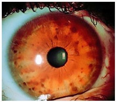 • Petele pigmentate de pe iris pot crește în număr în timp. Aceste pete se numesc noduli Lisch și nu afectează vederea.