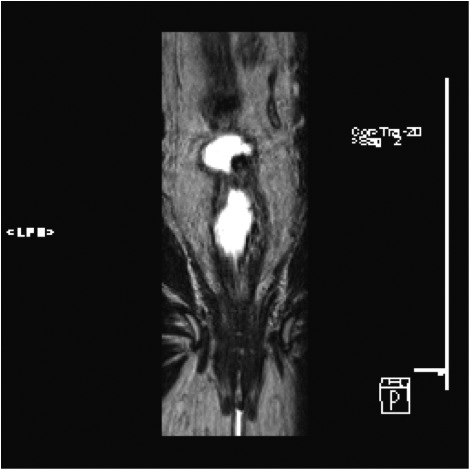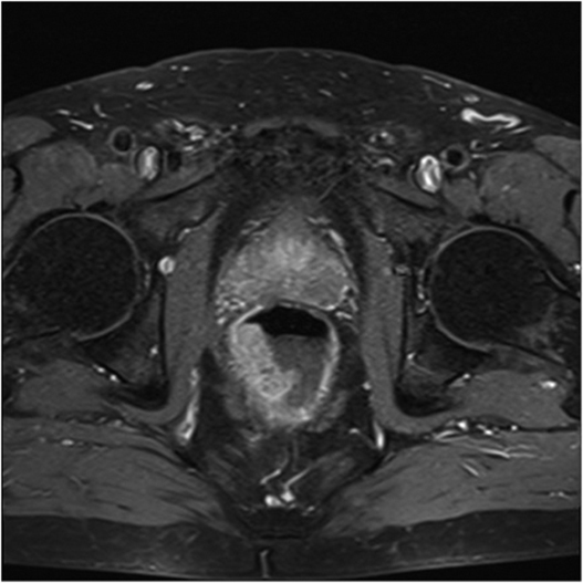 În cazurile suspecte cu fibroză extensivă însă fără arii clare de restricție de difuzie, pacienții pot fi monitorizați endoscopic sau cu secventa de difuzie IRM pentru a evidenția eventuale modificări de semnal/restricție de difuzie/creștere în dimensiuni la nivelul peretelui rectal.