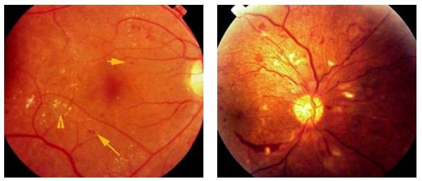 În unele cazuri, pereții subțiri ai capilarelor se rup și pe retină apar mici hemoragii.