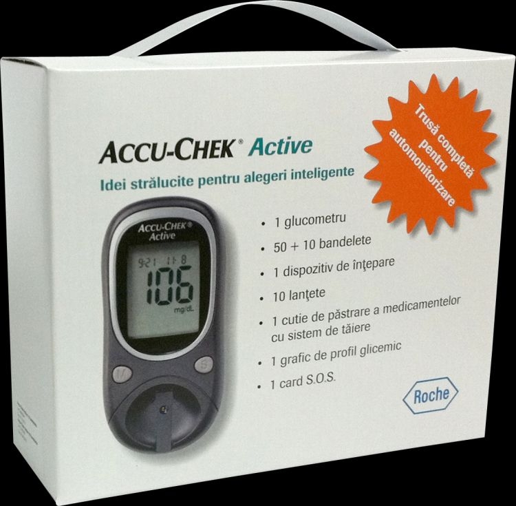 In anul 2011 Roche Romania Diagnostics Division ofera publicului “Trusa completa pentru automonitorizare Accu-Chek Active”. Persoanele care doresc sa aiba un control comod, eficient si real al diabetului, vor gasi in aceasta trusa Sistemul de analiza vizuala a glicemiei Accu-Chek 3600 View. Testarea structurata in 3 zile consecutive, la momentele potrivite, ofera informatii pretioase asupra factorilor care influenteaza variatiile glicemiei. Graficul de profil glicemic Accu-Chek 3600 View maximizeaza valoarea fiecarei testari si incurajeaza in luarea deciziilor corecte pentru un control glicemic mai bun, ajutând astfel la intârzierea aparitiei complicatiilor diabetului.