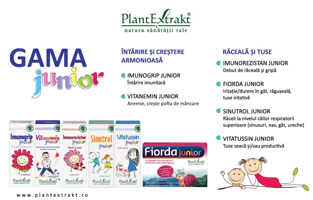 Pentru copiii obosiți, sau fără poftă de mâncare, care răcesc des sau au o creștere dificilă, este util produsul VITANEMIN JUNIOR. Administrat în cure de 4-6 săptămâni, crește vitalitatea copilului, stimulează pofta de mâncare, corectează anemia, întărește sistemul osos și dantura. Se poate alterna în administrare cu Imunogrip junior, pentru creșterea armonioasă a copilului (în pauzele de 4 zile de la administrarea de Imunogrip Junior).