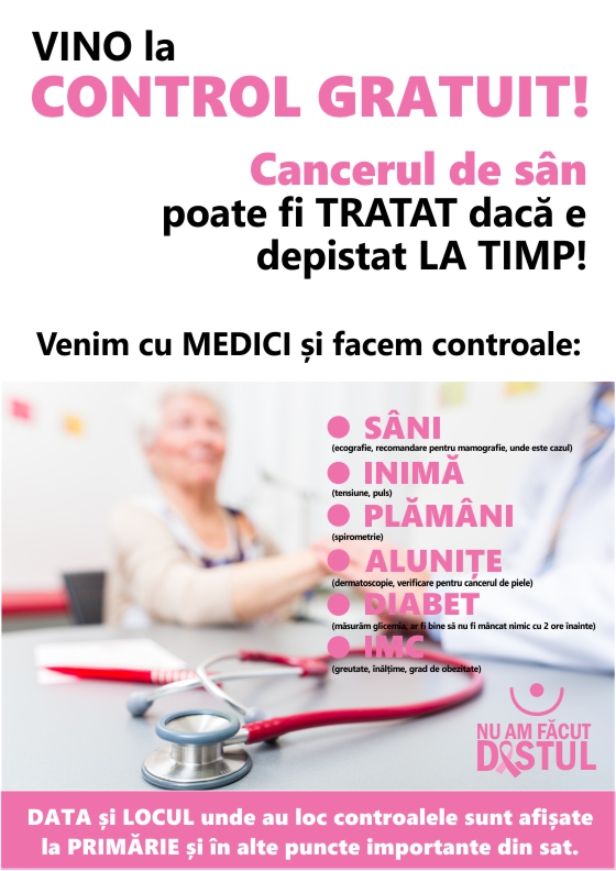 Peste 1.000 de femei din mediul rural vor fi testate gratuit în următoarele două luni pentru depistarea cancerului mamar. Caravana „Nu am făcut destul” strânge, pentru al șaselea an la rând, medici și studenți la Medicină care vor oferi consultații și informații în 14 sate din județele Timiș, Hunedoara, Arad, Satu Mare și Bihor.