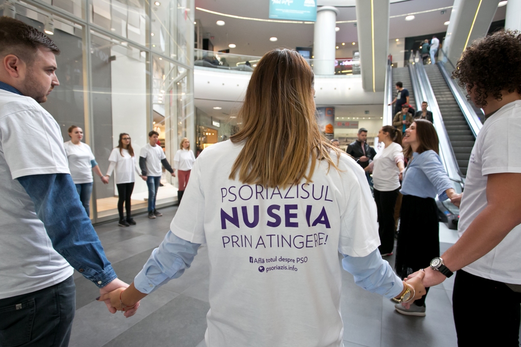 Un Lanț Uman format din zeci de persoane a atras atenția asupra stigmei cu care se confruntă pacienții cu psoriazis - într-o acțiune organizată de Ziua Internațională a Psoriazisului
