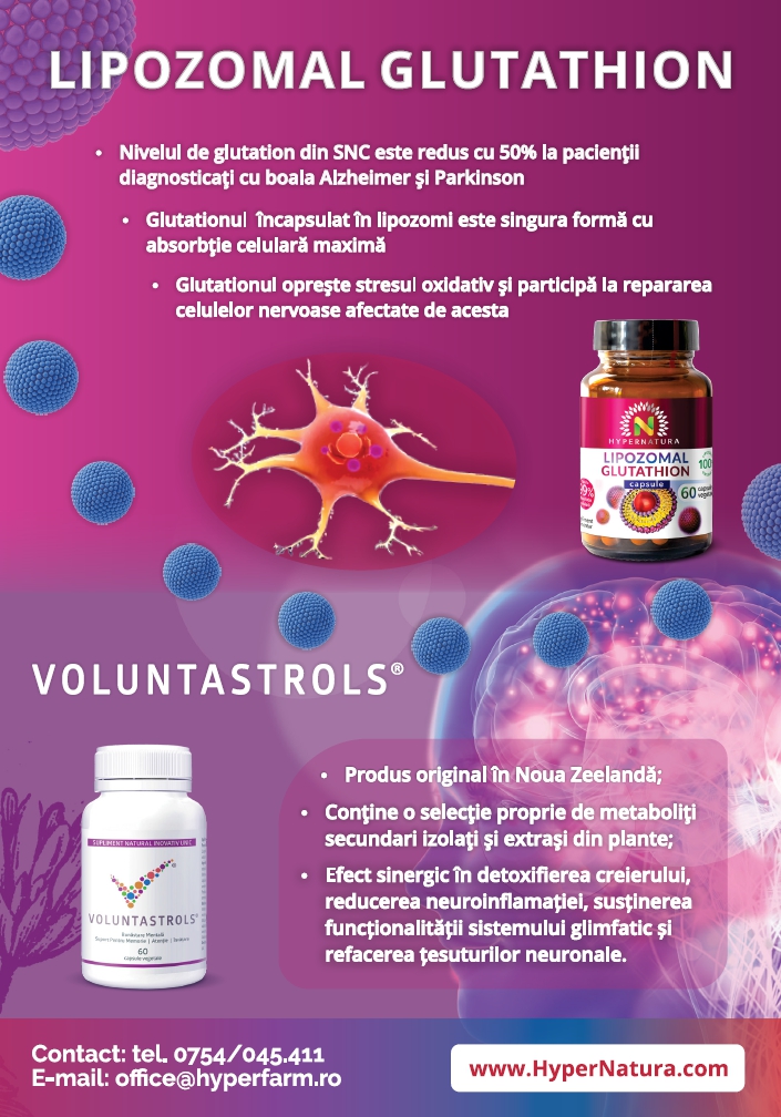 Studiile demonstrează că modularea răspunsului inflamator de către fitomolecule naturale, precum polifenolii din Voluntastrols® și suplimentare cu Glutathion în formă lipozomală exercită un rol important în prevenirea și ameliorarea multor boli inflamatorii cronice, inclusiv depresia, scăderea rezilienței psihice și a bolilor neurodegenerative.