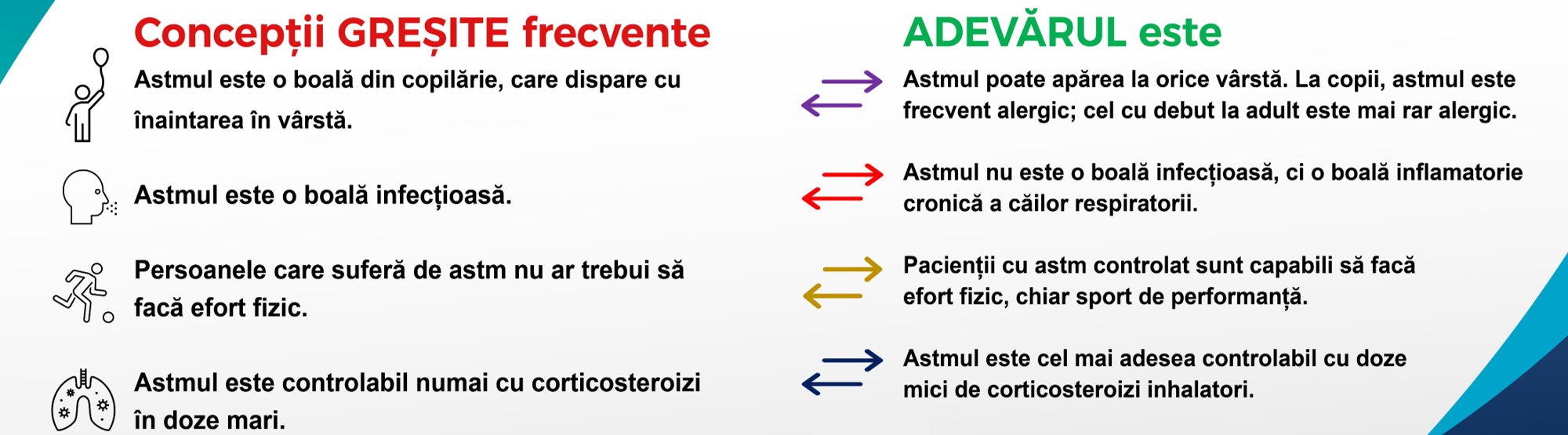Să eliminăm prejudecățile despre astm!” este motto-ul care definește anul acesta campania dedicată Zilei Mondiale a Astmului. Sloganul transmite un apel la acțiune pentru a aborda miturile comune și ideile greșite referitoare la astm care împiedică persoanele cu astm să beneficieze în condiții optime de progresele majore făcute în gestionarea acestei afecțiuni.