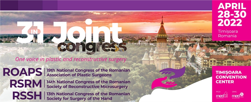 The Romanian Association of Plastic Surgeons (Ro.A.P.S.), the nation’s largest organization of board-certified plastic surgeons, is honored to announce and welcome you to the „3 in 1 Joint Congress”, our 19th National Congress with international attendance, which will take place during 28-30 April 2022, in Timisoara, Romania. The event will be organized in partnership with two major national societies, the Romanian Society for Surgery of the Hand and the Romanian Society of Reconstructive Microsurgery, with a strong commitment to unity for our specialty. The event will be endorsed by the American Society of Plastic Surgeons (ASPS), partner society through the Memorandum of Understanding, signed in 2019, along with other European and international partners (ICOPLAST, EAS(A)PS, FESSH, IFSSH, AAHS, EFSM and WSRM), directly or through our national partners. A special pre-congress video-session of the World Society for Reconstructive Microsurgery will be included in the program of the joint congress.