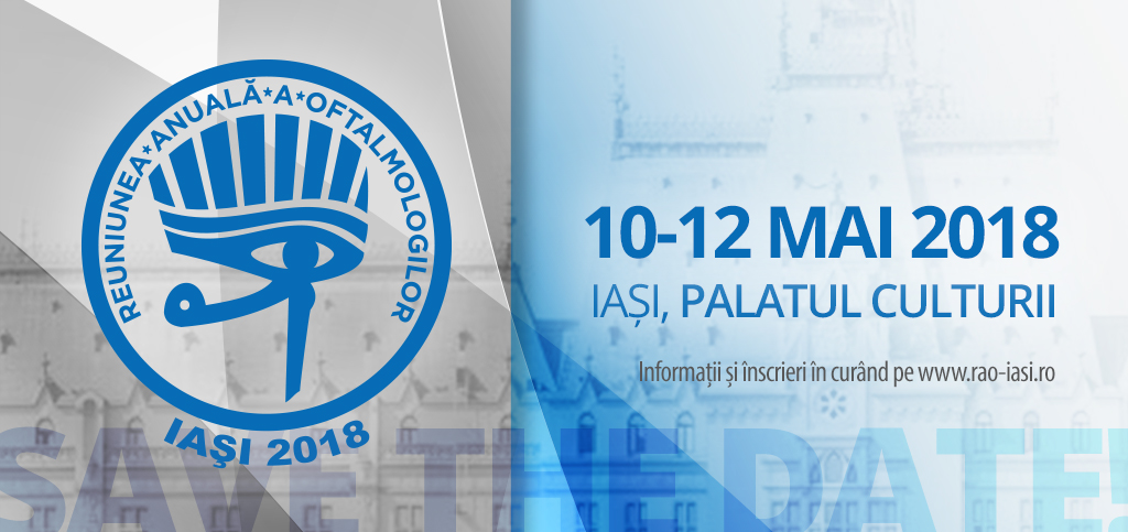 Suntem onorati sa va invitam la lucrarile celei de-a 54-a editie a Reuniunii Anuale a Oftalmologilor – RAO 2018 si celei de-a 11-a Reuniune Oftalmologica a Asistentilor Medicali ce va avea loc la Iasi in perioada 10-12 mai 2018.