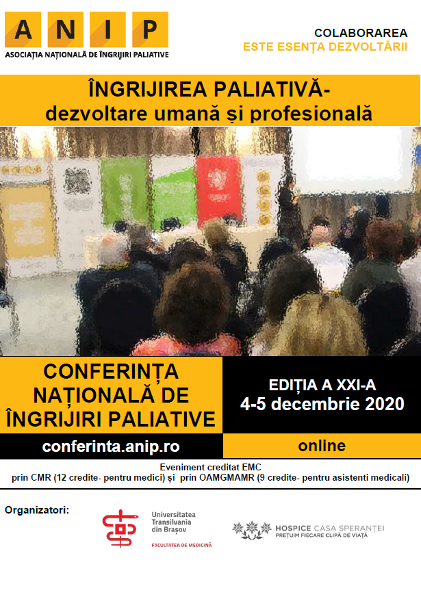 Organizatori: Universitatea Transilvania Brașov- Facultatea de Medicină & Asociația Națională de Îngrijiri Paliative & Fundația HOSPICE Casa Speranței