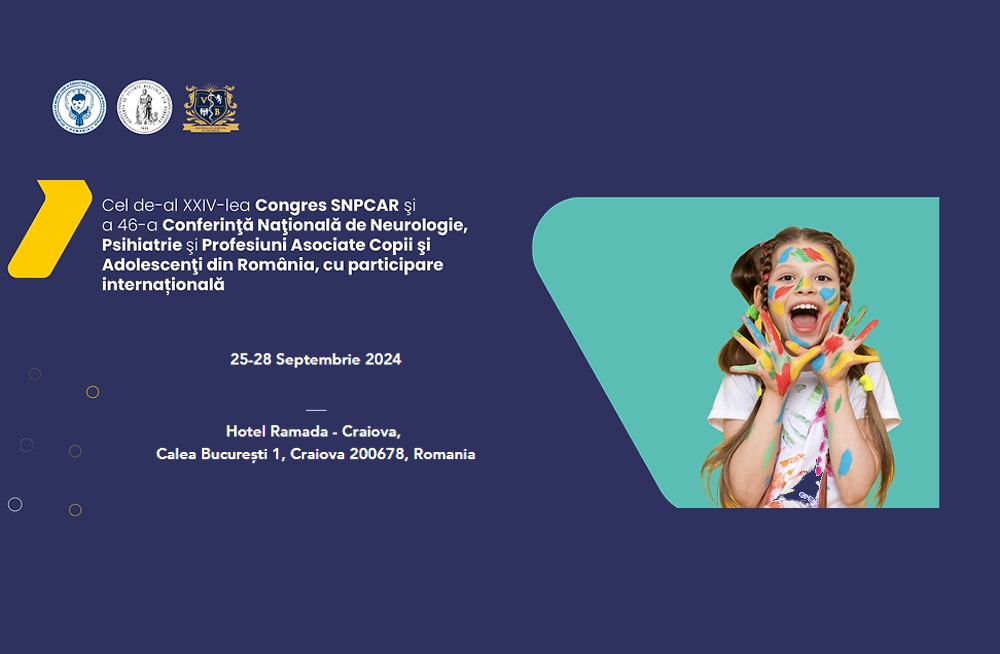 Vă invităm să participați la Cel de-al XXIV-lea Congres SNPCAR şi a 46-a Conferinţă Naţională de Neurologie-Psihiatrie a Copilului şi Adolescentului şi Profesiuni Asociate din România cu participare internaţională