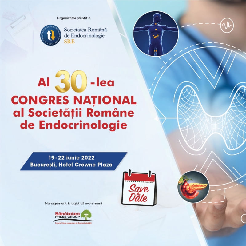 Societatea Romana de Endocrinologie organizeaza in perioada 19-22 iunie 2022 al XXX-lea Congres National de Endocrinologie.