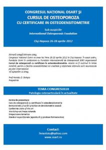 Congres National OSART 2012 Stimată colegă/Stimate coleg, Congresul Naţional OsArt va avea loc între 26-28 aprilie 2012 la Cluj-Napoca. În acest cadru, Fundaţia OsArt &...