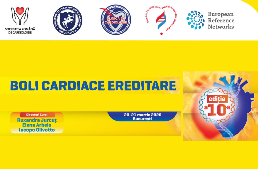 Societatea Română de Cardiologie are deosebita plăcere de a anunţa organizarea celei de-a X-a ediţii a Cursului anual Boli Cardiace Ereditare!