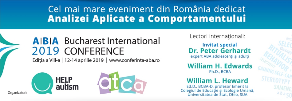 Conferința Internațională ABA rămâne, și la cea de-a opta ediție, cel mai important eveniment din Sud Estul Europei dedicat terapiei comportamentale aplicate, cu peste 20 de lectori din Statele Unite ale Americii, Grecia, Marea Britanie, India și România și peste 500 de participanți așteptați.