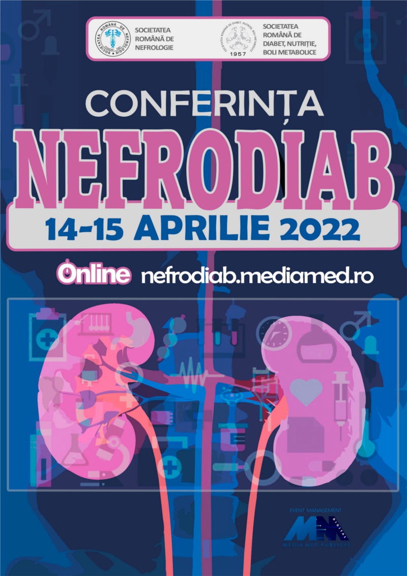 Bine ați venit la Conferinţa Naţională NefroDiab – Ne bucurăm să ne fiţi alături şi în acest an! A şasea ediţie a acestei manifestări cu tradiţie se desfăşoară pentru al treilea an consecutiv, în format ONLINE. Programul științific va cuprinde subiecte cheie în managementul bolilor cronice de rinichi, reunind experţi renumiţi atât nefrologi şi diabetologi, cât și din specialități conexe. Participanții vor avea oportunitatea de a-și îmbunătăţi cunoștințele profesionale în cadrul evenimentului prin accesul la ultimele studii, prin sesiuni dedicate complicaţiilor asociate bolilor cronice de rinichi la pacienţii cu diabet zaharat, precum şi prin prezentarea celor mai inedite experienţe din practica medicală de zi cu zi a lectorilor.