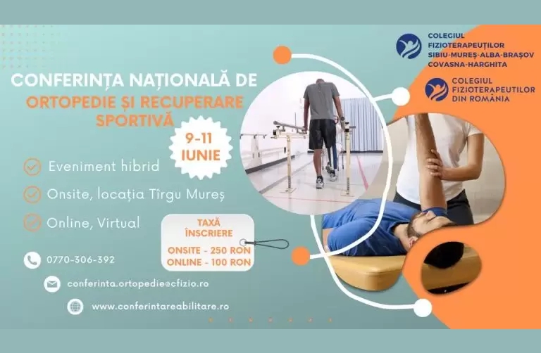 Cu bucurie vă aducem la cunoștiință că în perioada 9-11 iunie se va desfășura prima conferință de ortopedie si recuperare sportivă organizată de Colegiul Fizioterapeuților Sibiu – Mureș – Alba – Brașov – Covasna – Harghita.