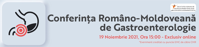Societatea Română de Neurogastroenterologie vă invită la Conferința Româno-Moldoveană de Gastroenterologie, ce va avea loc in data de 19 noiembrie 2021, începând cu ora 15.00 – Exclusiv Online!