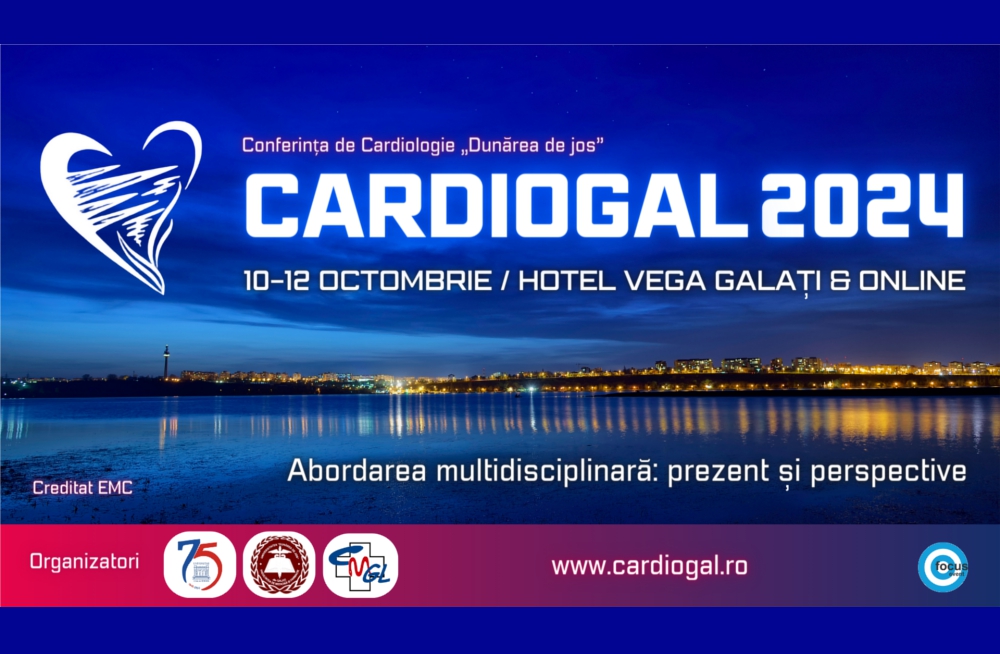 Cea de-a doua ediție a Conferinței de Cardiologie CARDIOGAL se va desfășura la Galați în perioada 10 – 12 Octombrie 2024, atât cu participare FIZICĂ, cât și cu transmisia ONLINE a lucrărilor științifice.