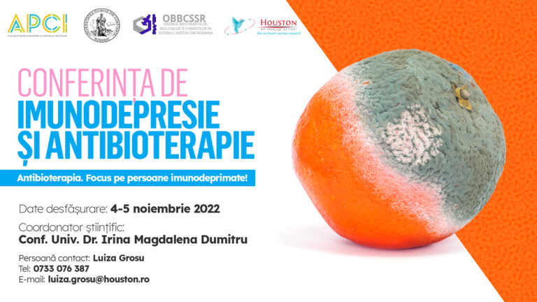 Afisari: 1190Ne vedem pe data de 4-5 noiembrie 2022 la o nouă ediție a Conferinței de Imunodepresie și Antibioterapie, ONLINE, pe ZOOM, de această dată cu focus pe pacientul imunodeprimat!