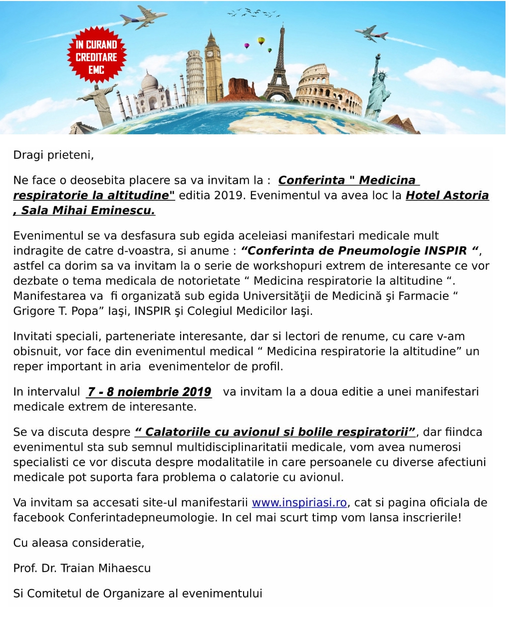 Conferinta medicala " Medicina respiratorie la altitudine Iasi