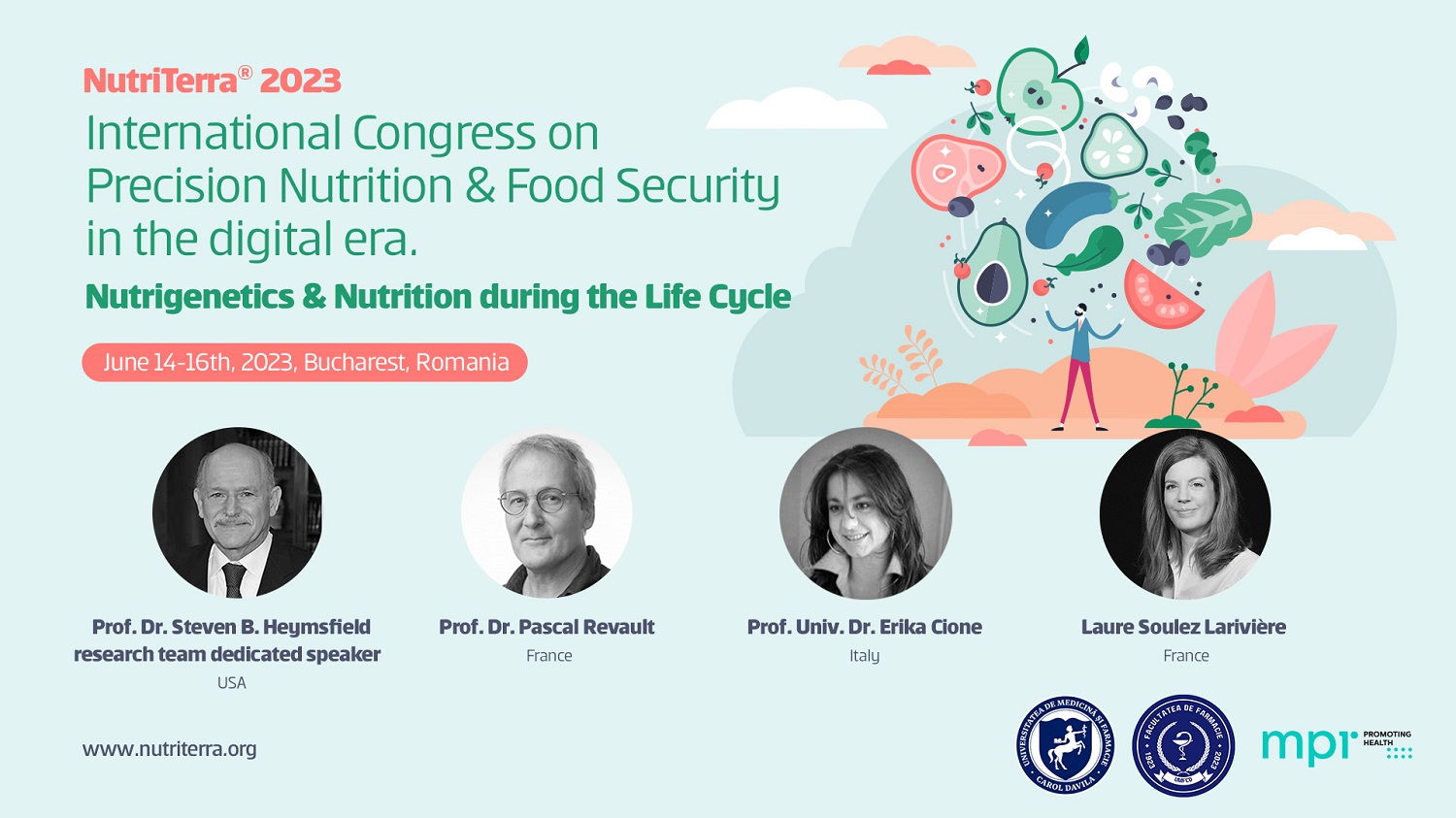 Congresul Internațional NutriTerra 2023 este unul dintre cele mai importante evenimente academice din domeniul nutriției și al siguranței alimentelor și se așteaptă să adune peste 500 de participanți din întreaga lume. Evenimentul este găzduit de Universitatea de Medicină și Farmacie "Carol Davila" și se va desfășura în format hibrid, în perioada 14-16 iunie 2023 în București.