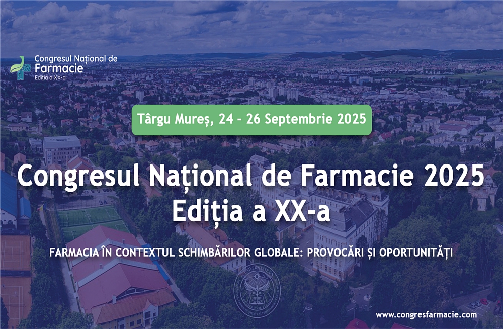În contextul globalizării și tehnologizării vă lansăm provocarea de a profita împreună, aici la Târgu Mureș, orașul fanion al industriei farmaceutice românești, de șansa unei schimbări de paradigmă, transformând amenințările în oportunități, schimbând idei, concepte, știință și conștiință. Acesta este rostul celei de a XX-a ediții a Congresului Național de Farmacie, Târgu Mureș 2025.