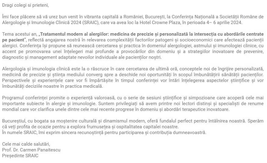 Congresul Societății Române de Alergologie și Imunologie Clinică 2024