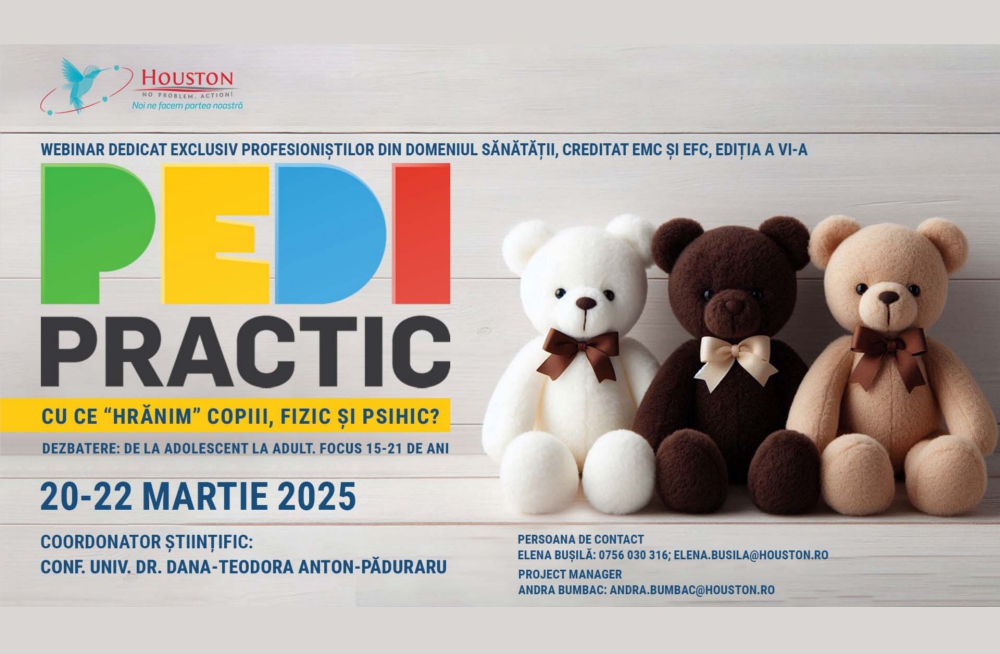 Vă invităm la ediția a 6-a a webinarului Pedi Practic, coordonată științific de Conf. univ. dr. Dana-Teodora Anton-Păduraru, unde ne propunem să aducem în prim-plan nu doar aspectele fizice ale creșterii și dezvoltării copiilor și adolescenților, dar și legătura profundă dintre sănătatea lor fizică și cea emoțională.