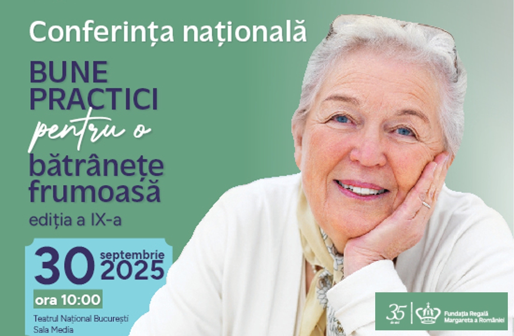 Fundația Regală Margareta a României organizează marți, 30 septembrie 2025, începând cu ora 10:00, la Teatrul Național București – Sala Media, ediția a IX-a a conferinței naționale Bune Practici pentru o Bătrânețe Frumoasă. Înscrierile sunt deschise pe pagina web oficială a conferinței.
