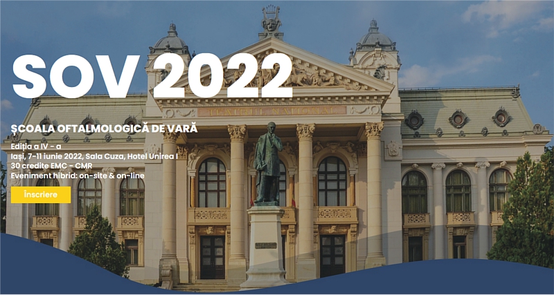 Suntem onorați să vă anunțăm că în perioada 7-11 iunie 2022 vom organiza ediția a IV-a a Școlii Oftalmologice de Vară din România (SOV 2022), manifestare științifică organizată sub patronajul Societății Române de Oftalmologie.