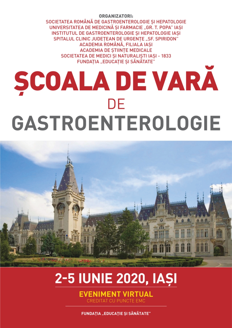 Vă invităm să participați, de această dată în mediul virtual, la Școala de Vară de Gastroenterologie care va avea loc în perioada 2 – 5 Iunie 2020.