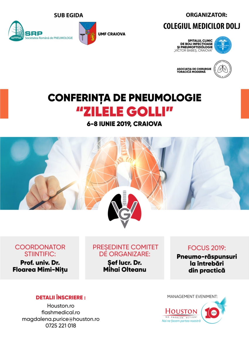 În perioada 6-8 iunie 2019, va avea loc cea de-a VI-a ediție a Conferinței de Pneumologie „ Zilele Golli”, manifestare încadrată în Zilele UMF Craiova și dedicată memoriei Prof. Dr. Virgiliu Golli, primul titular al catedrei de pneumoftiziologie a Facultății de Medicină din Craiova.