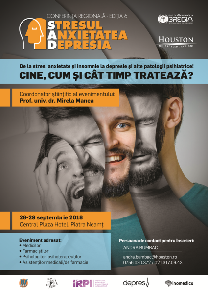 Între 28-29 septembrie 2018 va avea loc la Piatra Neamț cea de-a VI-a ediție a conferinței Stresul, Anxietatea, Depresia (S.A.D) – prima ediție regională a evenimentului – cu tema „De la stres, anxietate și insomnie la depresie și alte patologii psihiatrice! Cine, cum și cât tratează?”